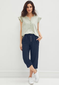 We love linen for leisurely pursuits. Our Rib Elastic Waist Linen Capri by ellos® is the perfect mix of comfy and cute. The easy-on styling and thick, stretch waistband made from knit material make these a dream to wear. And the soft linen blend and cropped leg offer superior comfort that will keep you cool all summer long.