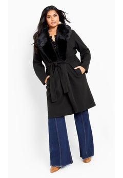 Glamorous and oh-so-trendy, our Faux Fur Trim Cape will turn heads everywhere you go. This chic look combines the best of high-fashion and functionality. With thick, dramatic faux fur trim along the collar, front, and cuffs, and a figure-flattering drape, this coast will bring out your inner queen.
