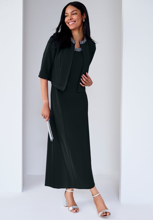 Item Number: 1037199Featuring an eye-catching design and a figure flattering fit, there is not a thing about the Jessica London women's plus size 2-Piece Beaded Jacket Dress that isn't stylish. Beautifully beaded style that goes from corner office to corner table. Sleeveless A-line dress has back zipper; jacket has hook-and-eye closure.