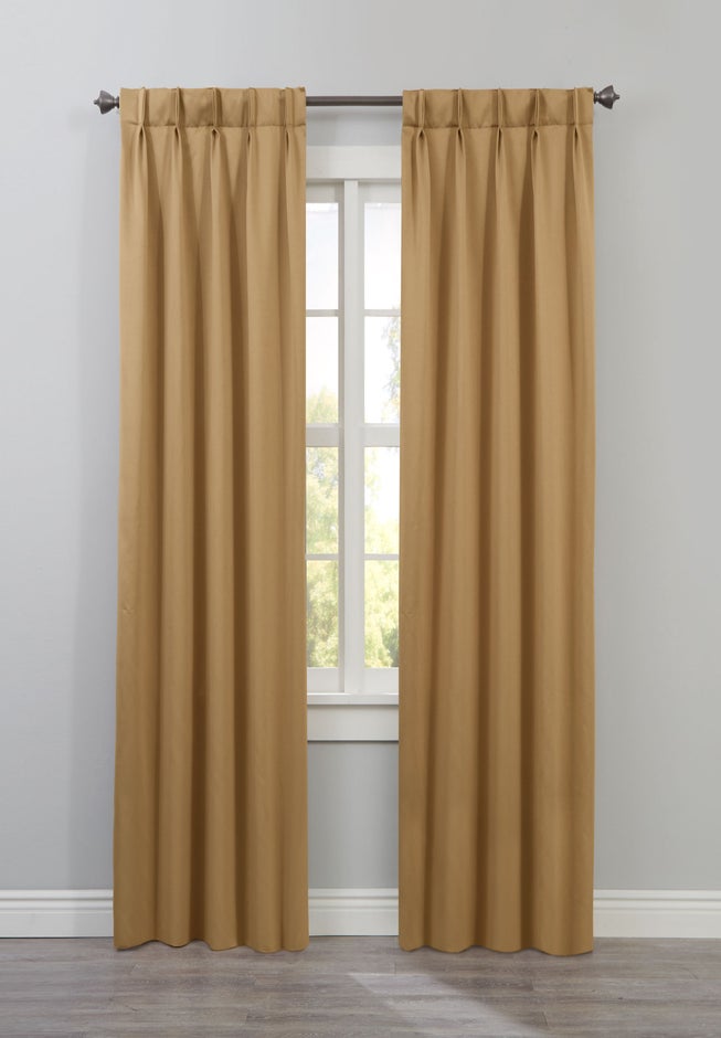 Ideal for darkening bedrooms, media rooms and more, you'll love these pinch pleat panels offered in a range of colors to suit your décor. Slides on curtain rod via 7 hidden tabs; each panel sewn with 4" top hem and 2" bottom hem. 7 hidden tabs for easy installation: 4" top hem and 2" bottom hem. Designed to lower energy bills, reduce sunlight and regulate temperature so your rooms stay cool in the summer and warm in the winter. Includes one panel. Don’t forget to add 2 to your cart to complete your window look.