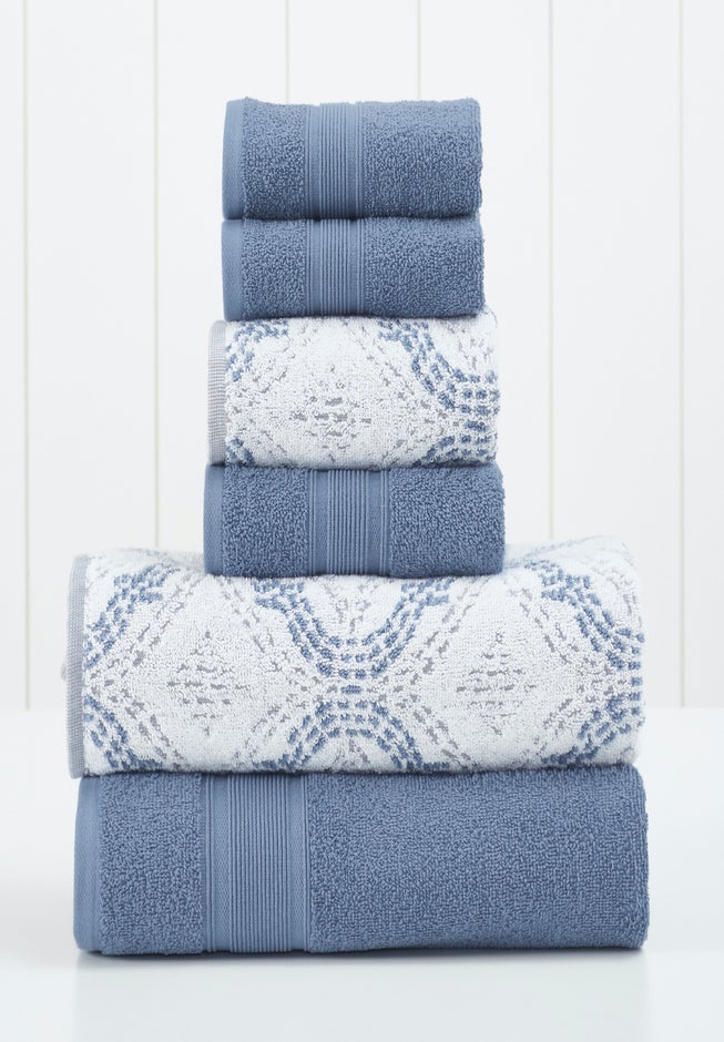 Elevate your bathroom with the refined elegance of the BH Studio Scroll Towel Set. Featuring a sophisticated jacquard scroll print paired with coordinating solids, this luxurious set adds a polished, spa-like feel to your master bathroom or guest bath. It’s the perfect blend of comfort, beauty, and everyday practicality all wrapped into one timeless collection.