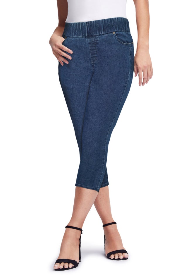 Item Number: 1009576The super comfortable waist you’ve been waiting for! These pull-on stretch denim jeans have an extra wide, all-around stretch waistband that won’t bind, won’t gap, and does the most to smooth out your waist for a streamlined look.