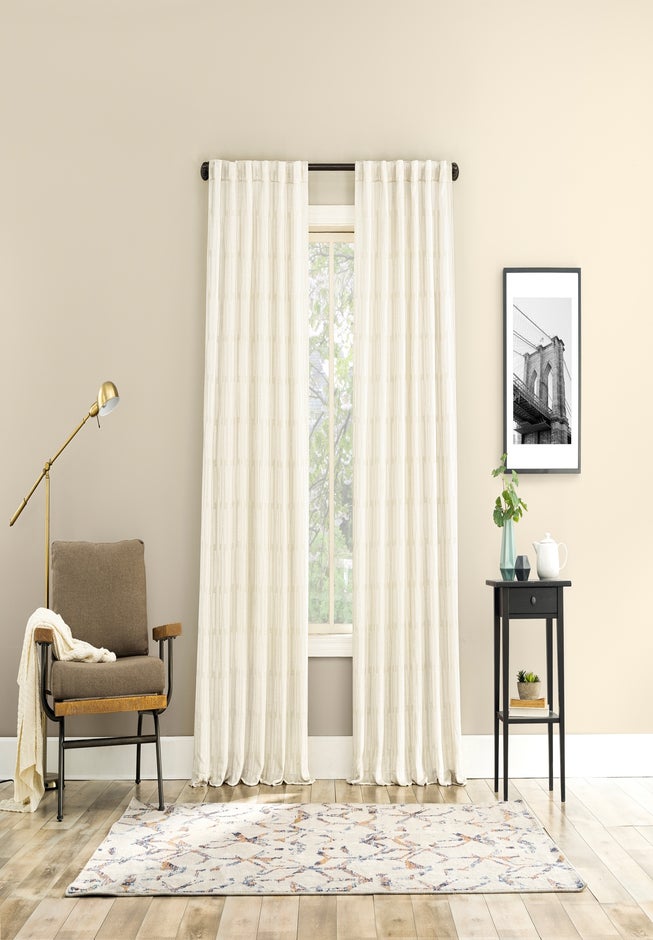 Designed to elevate everyday living, this thoughtfully crafted home essential blends style, comfort, and functionality. The Douro Abstract Geometric Semi-Sheer Back Tab Curtain Panels bring subtle dimension and sophistication to any living space. Woven fabric filters outside light while enhancing privacy. Back tabs or rod pocket fit curtain rods up to 1.5" in diameter. Panels sold individually. Measure carefully prior to purchase (Image features 2 panels).