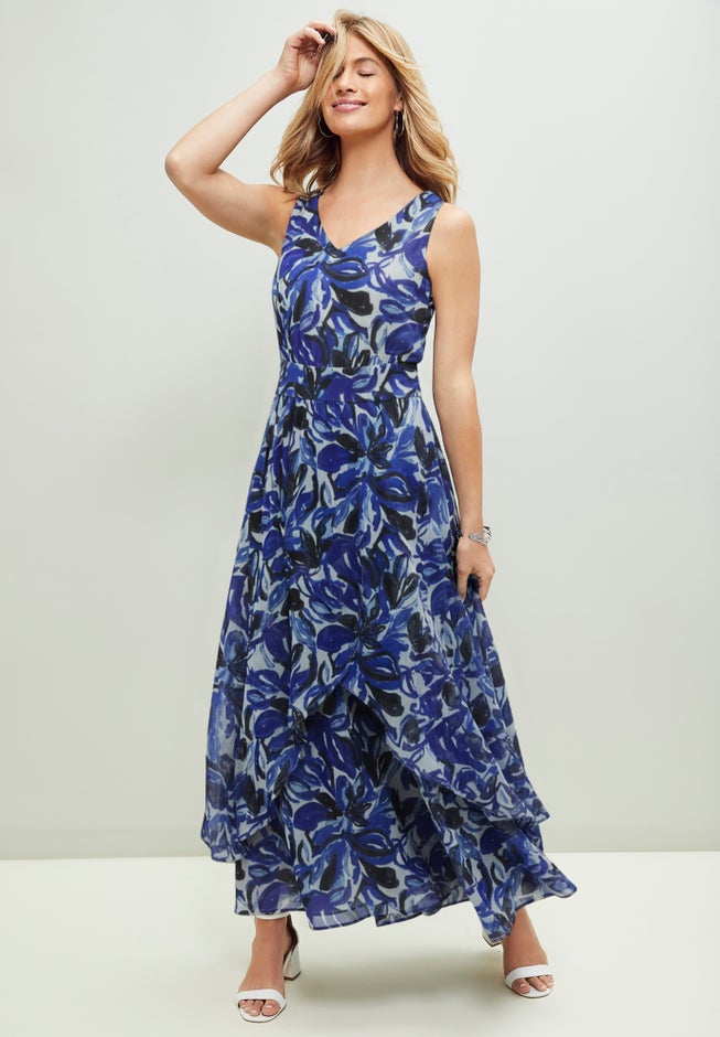 Item Number: 1037300Instantly update your wardrobe with the Jessica London women's plus size Georgette Flyaway Maxi Dress. The fit & flare silhouette offers figure flattering style and is complete with an empire waist that complements your curves.