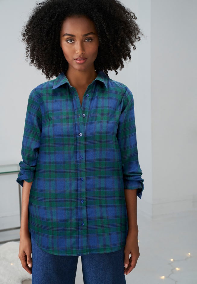 Our soft yarn-dye flannel shirt has all the classic details: shirt collar, button-front styling, long sleeves with button cuff, an inverted back pleat for ease of movement, and a shirttail hem. It's a wardrobe staple you'll love wearing for seasons to come!