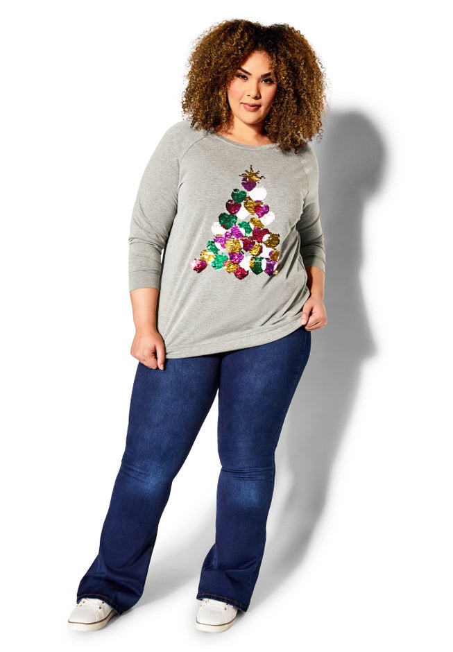 Bring a festive touch to your wardrobe with the striking sequin pattern of our Sequin Sweat Top. The gray marle hue immediately looks comfortable, while the hip-length hemline makes it easy to pair with anything.