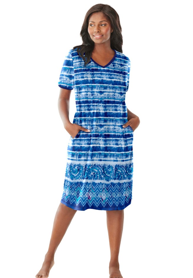 • Enjoy ultimate comfort with this delightful lounge dress featuring short sleeves and V-neck.