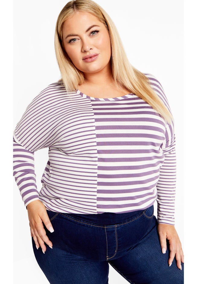 For a cool casual look, embrace the Sina Stripe Top this season! Sure to catch attention with a bold stripe print, this casual top offers long sleeve coverage and a comfortable relaxed silhouette.
