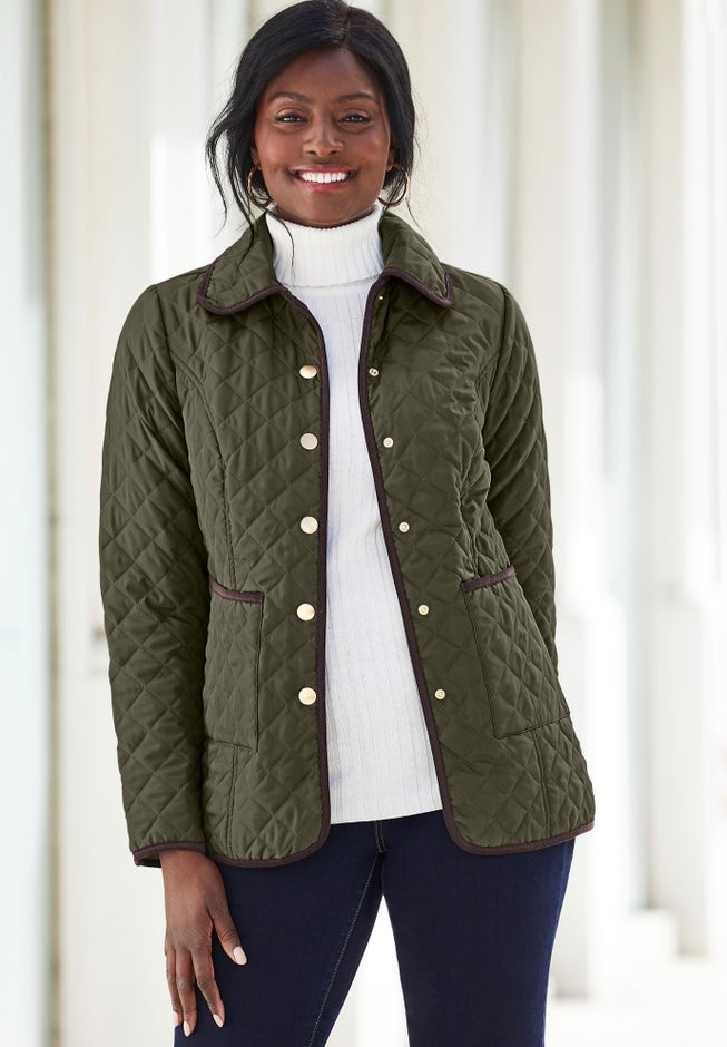 Item Number: 1069305Meet the Jessica London women's plus size Snap-Front Quilted Coat, the casual layer of the season. Quilting adds texture to this light layer that's the perfect piece to transition between seasons. Pair it with a turtleneck and jeans or chinos.