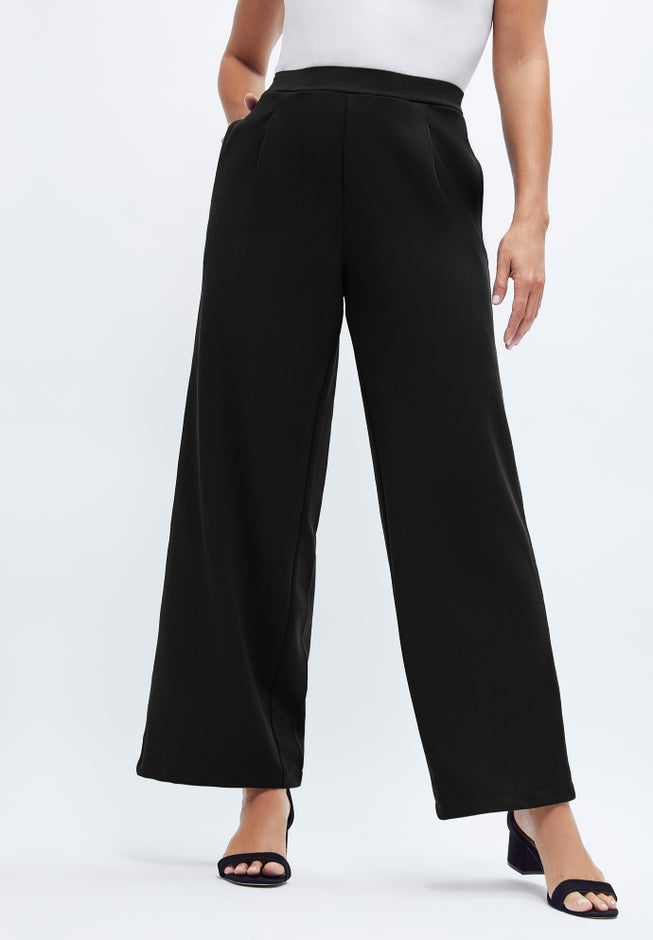 Item Number: 1077322Our bestselling stretch crepe in a new wide-leg silhouette. With its straight wide leg and comfortable elastic waistband, this pant offers a fit that never fails to flatter. Take this classic silhouette out for an evening paired with a tunic and strappy sandals.