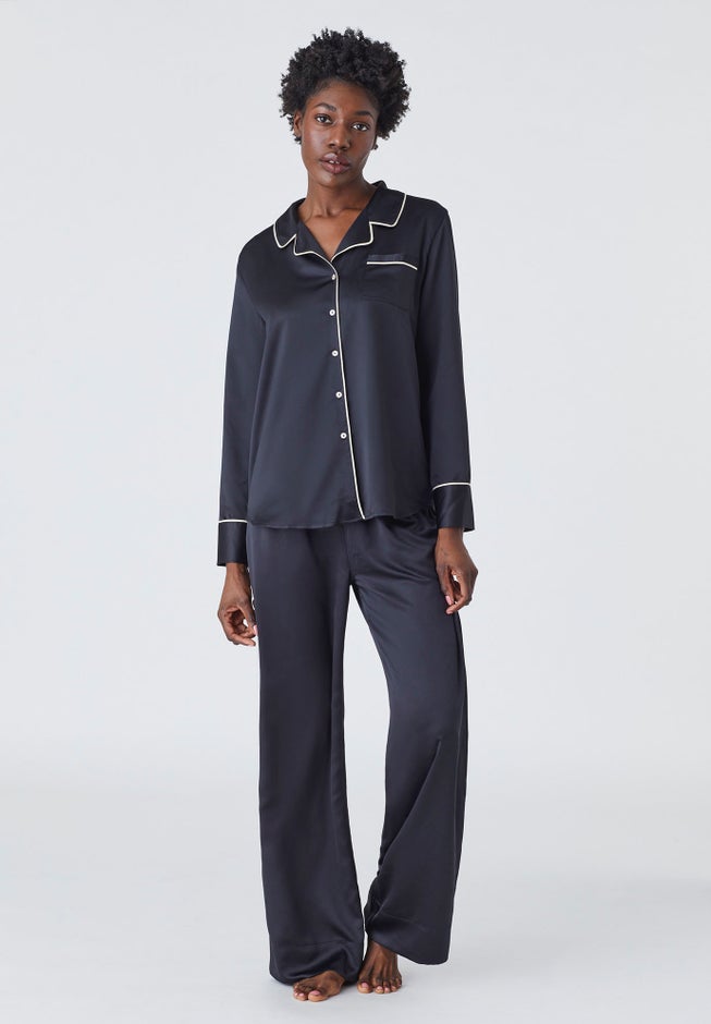 Bring the luxurious comfort of CUUP to bed. Spun from sustainable, recycled satin, this pajama set flaunts a relaxed fit, luxe feel, and stylish details – essential for a restful night’s sleep.